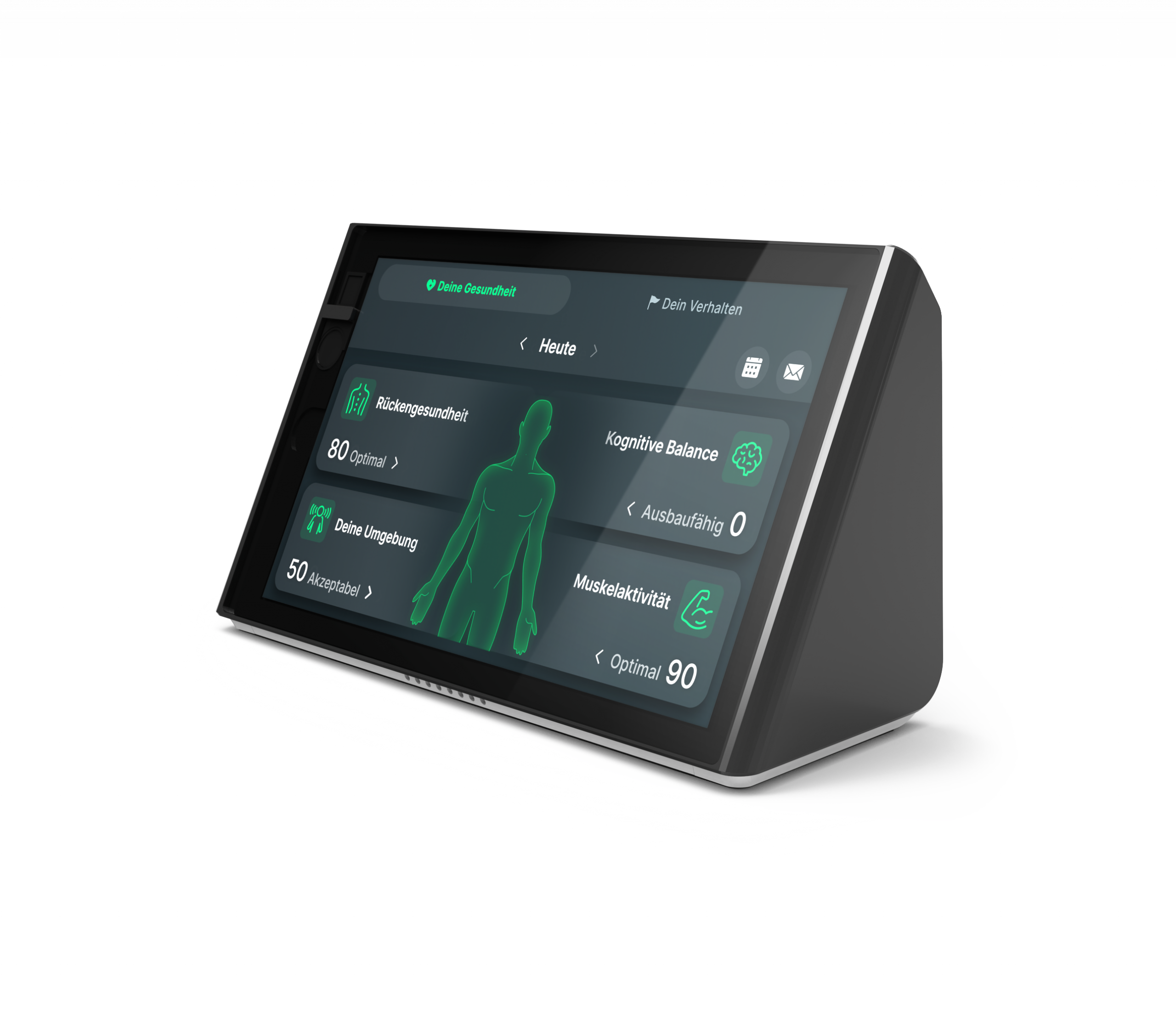 Isa works with a intelligent 3D sensor and a locally running AI. Among other things, the system recognises posture, movement, light, air quality, volume and drinking behaviour - without processing personal data. Isa uses this information to create an individual stress profile and provides brief, everyday suggestions for healthier behaviour in the workplace - completely automatically and without an app.